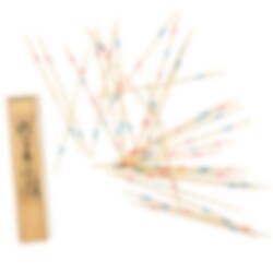 Släng ut de smala träpinnarna i en hög och försök plocka en pinne utan att rubba de andra. Plockepinn är ett roligt sällskapsspel med enkla regler som passar hela familjen. Trälåda med skjutlock, träpinnar och spelregler medföljer. Rekommenderas från 5 år.