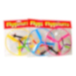Flygsnurran är en skoj uteleksak som du skjuter iväg med hjälp av det svarta handtaget som medföljer. I påsen finns tre olika snurror i plast, och du placerar helt enkelt en av dom på handtaget och drar i den röda plutten och vips! flyger snurran iväg! Skickas i osorterade färger, det vill säga det blir en överraskning vilka färger du får.