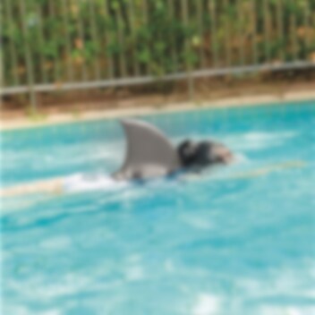 Hajfena Simhjälpmedel är en grå hajfena i plast som sätts fast runt barnets mage. Fenan underlättar när barnet ska lära sig att simma och uppmuntrar även till lek i vattnet. Den är 50,5 cm hög, 17 cm lång och 32,5 cm bred.