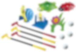 Golfset som är ett enkelt och kul sätt att få ut de små barnen från huset en varm dag. Förpackningen inkluderar 4 st. golfklubbor, 4 st. golfbollar, 2 st. hål och 3 st. hinder. Från 3 år.