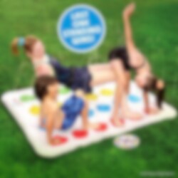 Twisterspel som i denna version kommer göra dig helt genomblöt. Kan du klara av att stå kvar när det sprutar vatten upp från alla cirklarna på mattan?
