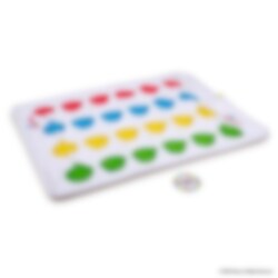 Förpackningen inkluderar en Twistermatta med en storlek på 173 x 132 cm, en vattentät spinner och spelregler. Från 6 år.