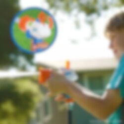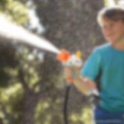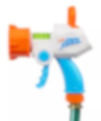 Ta sikte och gör dina motståndare genomblöta med den här vattenpistolen. Skottet drivs av vattnet från din trädgårdsslang och har en räckvidd på upp till 4-5 meter. Du kan välja mellan 4 olika munstycken.