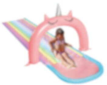 Rolig och söt vattenrutschbana i enhörningstema som blir perfekt under sommarens varmaste dagar. Rutschbanan är 3 meter lång och har en inbyggd vattenspruta i bågen. Från 3 år med tillsyn av en vuxen.