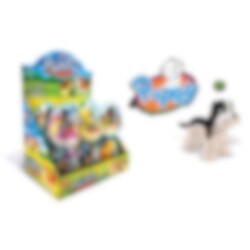 Leksaksägg som innehåller en hund och en påse med karameller med god fruktsmak. En skoj sak att ha i presentpåsen som en gåva till födelsedagsbarnet eller varför inte använda den som pinatafyllning eller innehåll till kalaspåsen. Äggen säljs styckvis och hunden finns i olika färger.