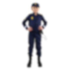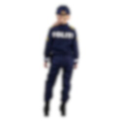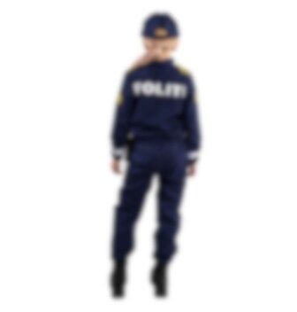 Ingår gör även ett par matchande mörkblå byxor med resår i midjan, och en matchande polishatt med vitt tryck.