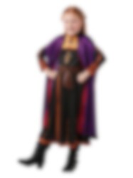 Frost 2 Anna maskeraddräkt inkluderar en vacker klänning i svart och lila med fina tryck och en matchande cape. Dräkten finns i tre storlekar som passar barn från 3-4 år upp till 7-8 år. Tillverkad av 100 % Polyester. Detta är en officiellt licensierad Disney produkt. Skor och peruk ingår ej.