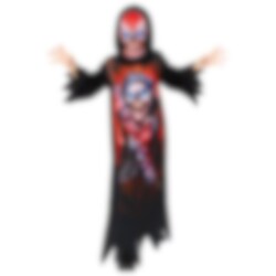 Gaming Reaper Maskeraddräkt inkluderar en svart rock med tillhörande huva och en helmask som föreställer en läskig lieman. Dräkten är tillverkad av 100 % polyester och finns i en storlek som passar till barn mellan 8 år till 10 år. Ska handtvättas och dropptorkas.