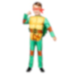 - Innehåller: Grön jumpsuit med sköld på ryggen och fyra olika ögonmasker i de olika ninjornas färger.