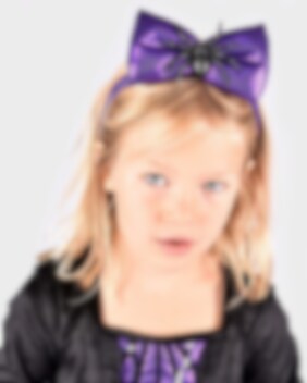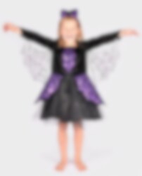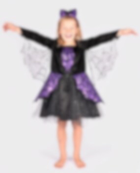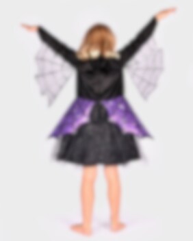 Känn dig som en modig och äventyrlig spindelhjältinna med denna Spidergirl Maskeraddräkt för barn. Klänningen är full av fina detaljer som en glittrig kjol, plastspindel på bröstet och transparenta vingar under ärmarna dekorerade med silverpaljetter. Det matchande diademet med en lila rosett och plastspindel fulländar din look.