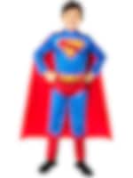Med denna klassiska Superman-dräkt förvandlas barnet till stålmannen själv. Den ikoniska loggan, det färgstarka trycket och den röda manteln ger en heroisk look som passar perfekt för maskerad, Halloween eller fantasifulla superhjälteäventyr.