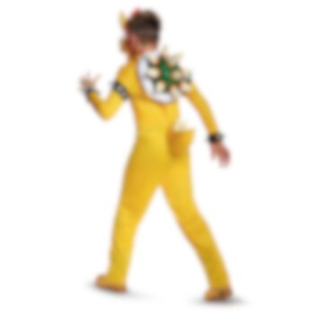 Bowser maskeraddräkt deluxe inkluderar en gul helkroppsdräkt med många snygga detaljer, ett uppblåsbart skal och en ansiktsmask av plast som täcker främre delen av ansiktet. Dräkten är tillverkad av 100% polyester. Handtvättas med lite vatten och dropptorkas.