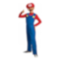 Super Mario Bros - Mario Maskeraddräkt Classic inkluderar en jumpsuit, en röd hatt och en avtagbar svart mustasch. Dräkten finns i en storlek som passar till barn mellan 10-12 år. Dräkten är tillverkad av 100% polyester. Skor ingår ej. Detta är en officiellt licensierad produkt.