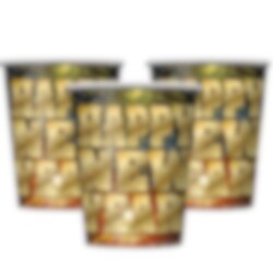 8 st. pappmuggar med färgsprakande nyårsmotiv. Muggarna är 10 cm höga och rymmer 270 ml.